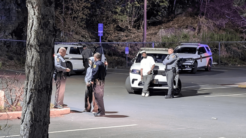 Police say they got out of their vehicle, giving Schoffstall several commands to stop running. Schoffstall allegedly ignored those commands and kept running through the parking lot as police continually ordered him to stop. Police say they threatened to use a Taser on Schoffstall if he didn’t stop running but he continued to run, this time between a fence toward a wooded area.