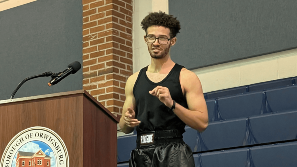 Keeshaun King, a junior at Pottsville Area High School, presented his pitch for King’s Fitness, a hybrid boxing and strength training program, which he currently operates.