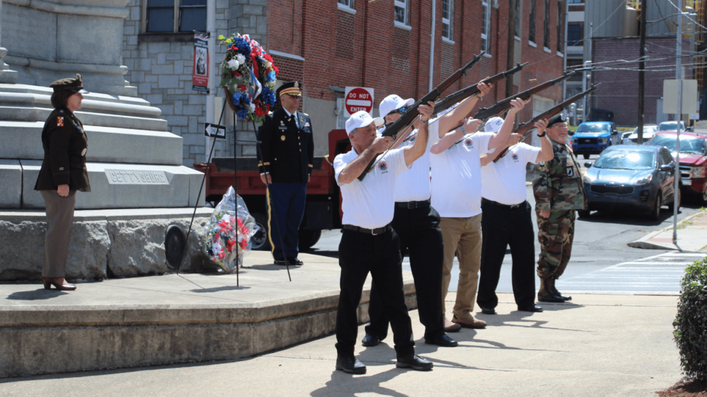 “We are here today to honor the example left to us by our fallen warriors that were unable to return to their families, homes, and our community. That’s why this day is so important to all of us, to pay a well-deserved tribute to those brave Americans who made the ultimate sacrifice in defense of our nation, to ensure for us the freedoms that we now enjoy,” McHugh said Monday from a sun-drenched dais in the middle of Garfield Square on W. Market St.