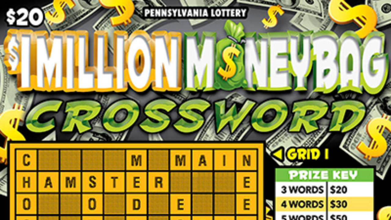 A $1 Million Moneybag Crossword ticket cost the player $20. There were just 5 $1 million winning tickets created and 3 have already been claimed. The chances of winning the jackpot are 1:1.92 million.