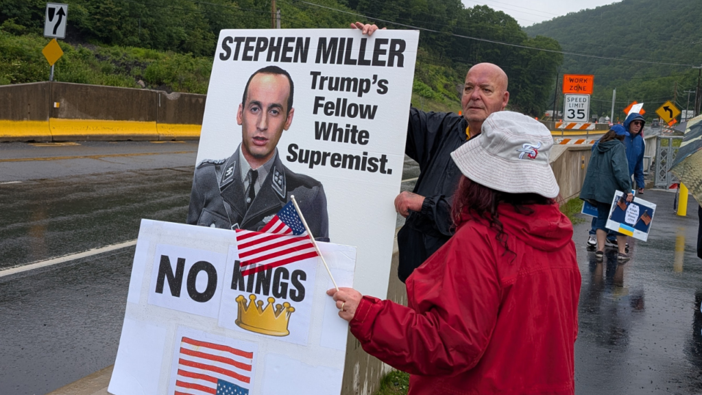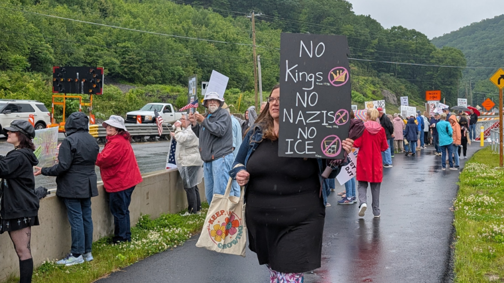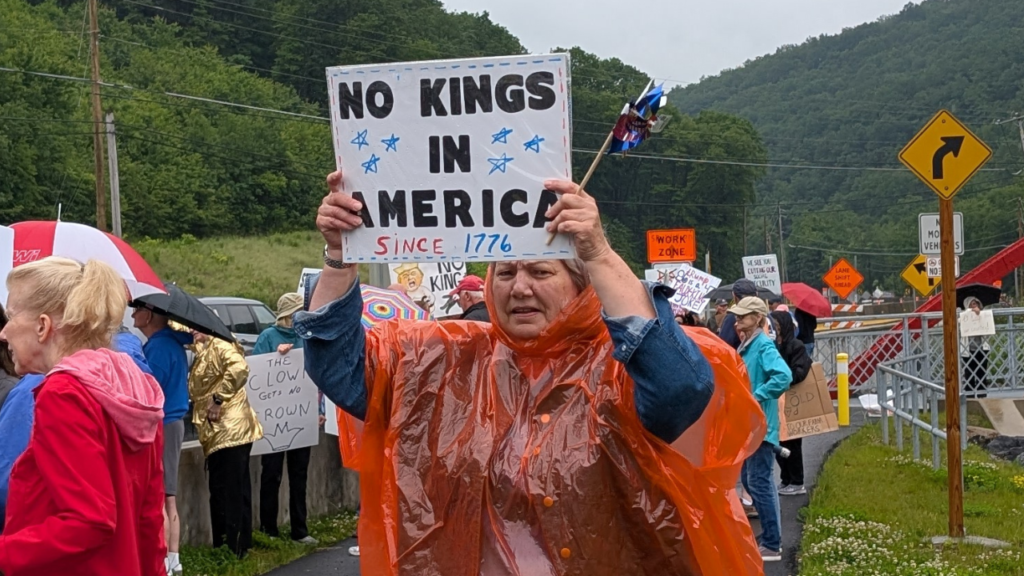 About 180 protesters attended a No Kings rally Saturday morning in Schuylkill County.