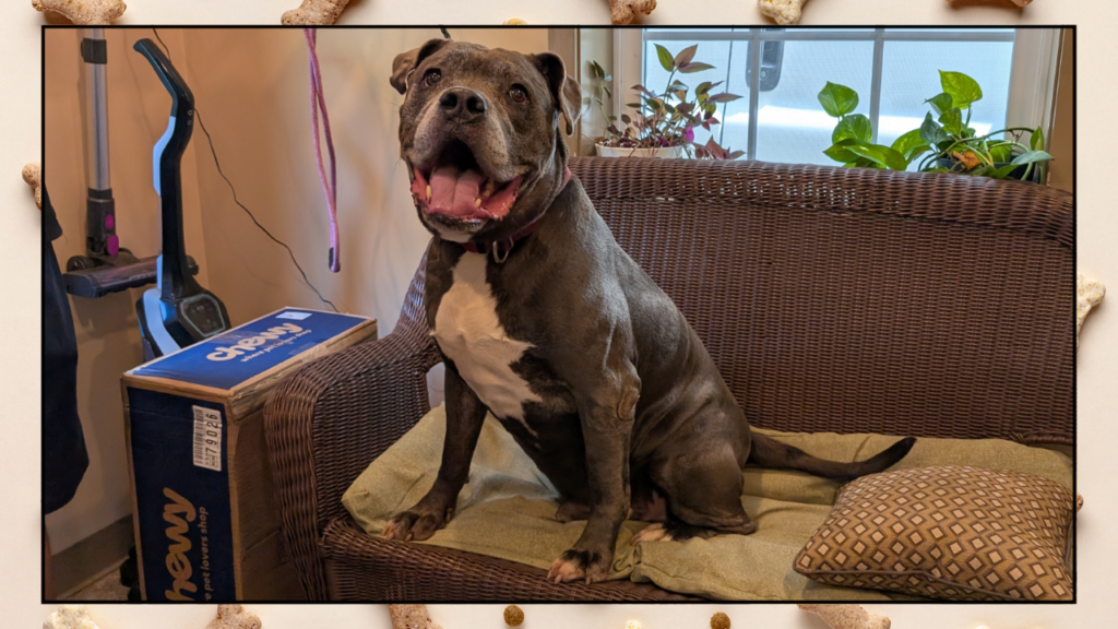 Pops is an 8- to 9-year-old American Bulldog mix with a heart full of love and a personality that lives up to his name.