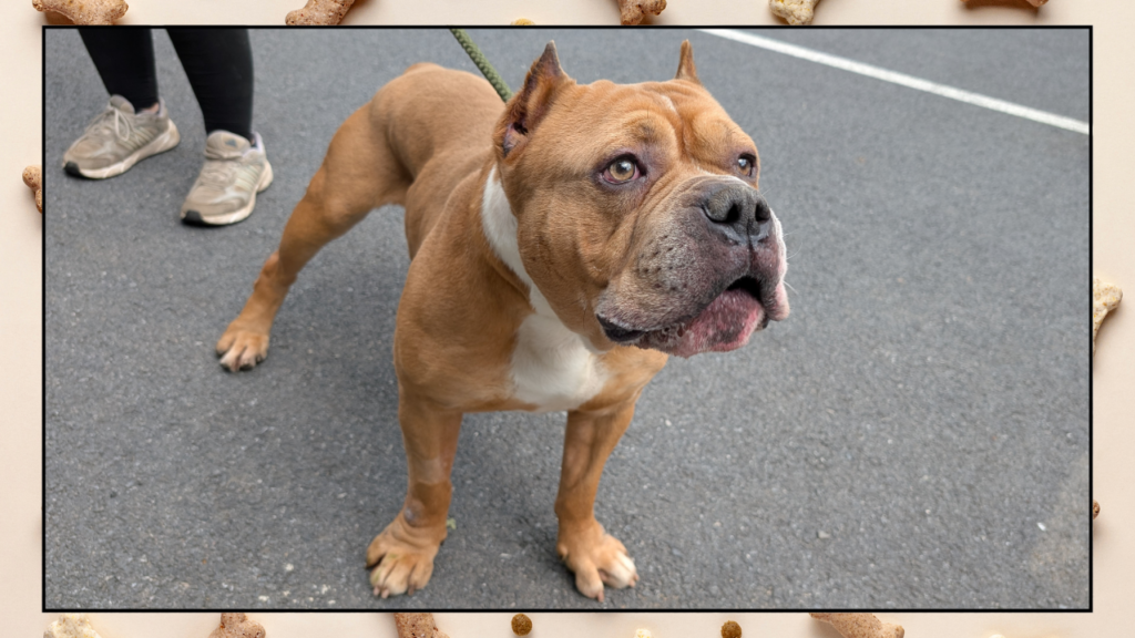 This 4-year-old American Bulldog is a big softie with a love for stuffy toys and making new friends!