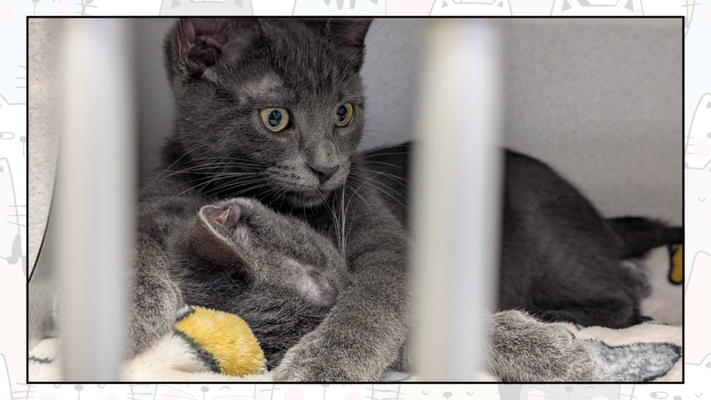 Double the fluff, double the fun! Sawyer and Meadow are 12–14-week-old Russian Blue siblings who came to the shelter as strays but quickly stole everyone’s hearts. These playful purr machines are full of energy, curiosity, and sibling mischief—and they love to entertain each other (and you!).
