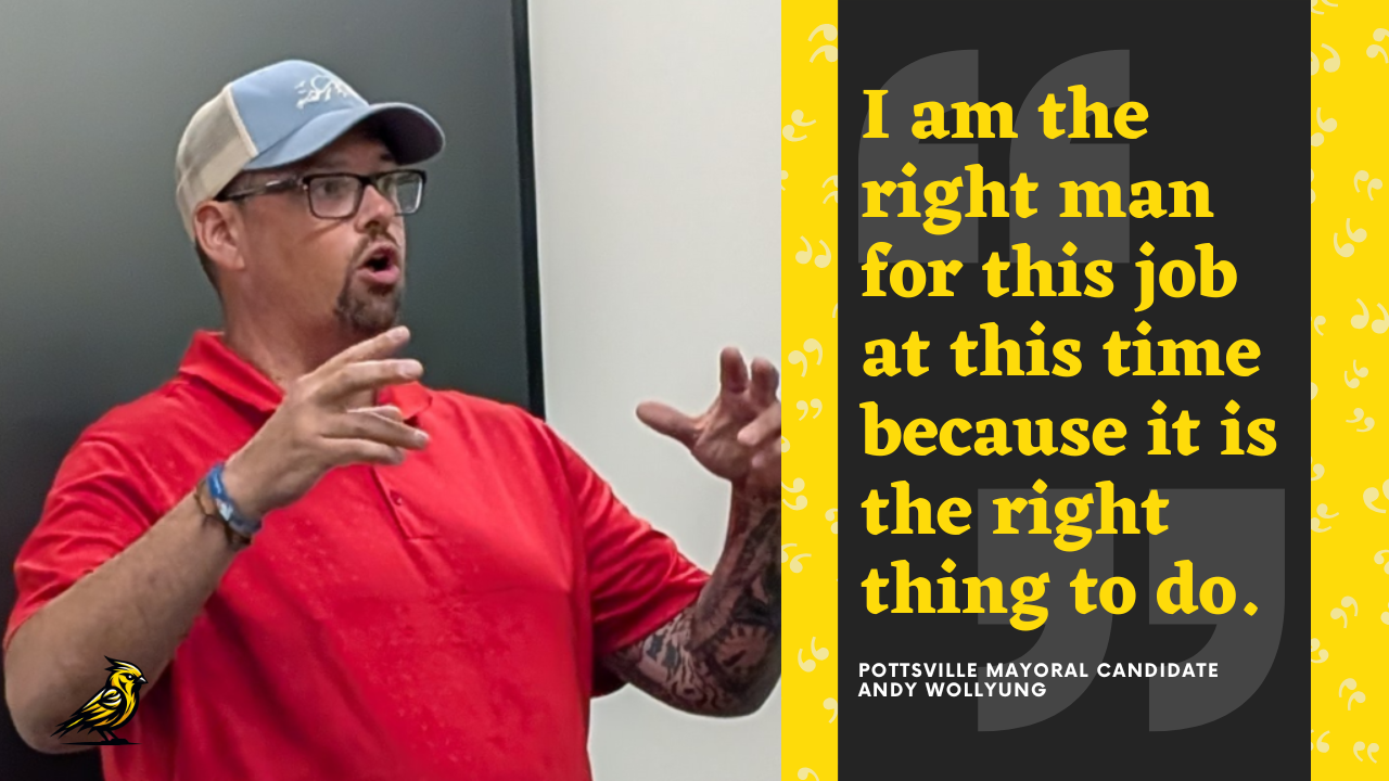 Wollyung closed by stressing the importance of electing him, Wood, and Weres so they can “continue working hard for Pottsville.”