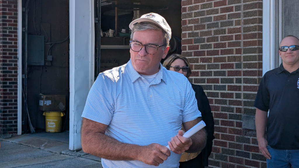 PennDOT Sect. Mike Carroll visited Minersville Thursday afternoon to hear of the borough’s success with allowing off-road vehicles on borough streets. (Coal Region Canary photo)
