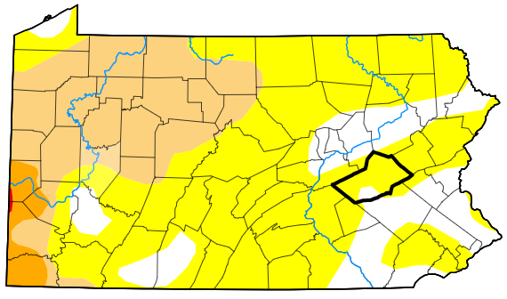 Statewide, western Pennsylvania is experiencing drought conditions. Parts of Beaver and Washington counties along the Ohio border are in an extreme drought designation.