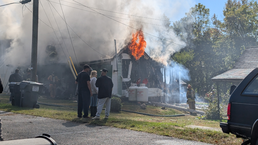 Firefighters were called to the scene at School Row shortly after 10 a.m. Friday. As emergency crews were nearing the scene, a column of smoke was rising from the structure. That column of smoke was clearly visible from Route 209.