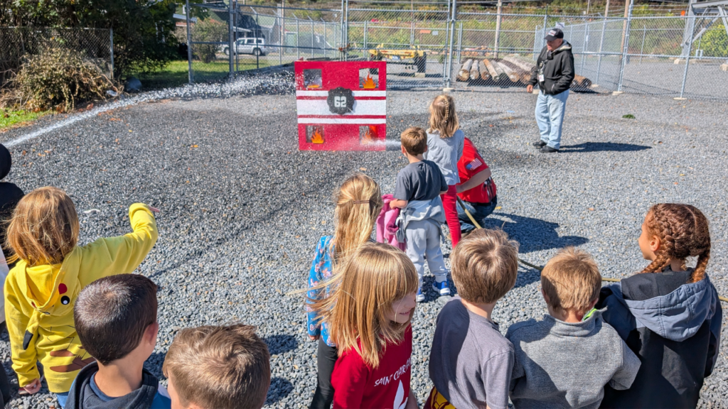Students were shown numerous pieces of fire fighting equipment and a few pieces of fire apparatus. They also had the opportunity to handle a live fire hose and learn life-saving information inside a Fire Safety House.
