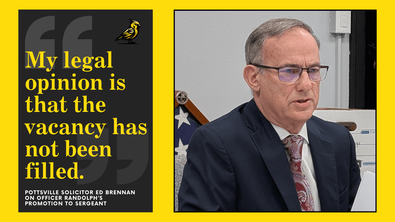 At a special meeting of Pottsville City Council later in August, Randolph was represented by attorney BJ Evans, who argued that council members could not legally vote against a grievance that his client had filed after his promotion was not ratified.