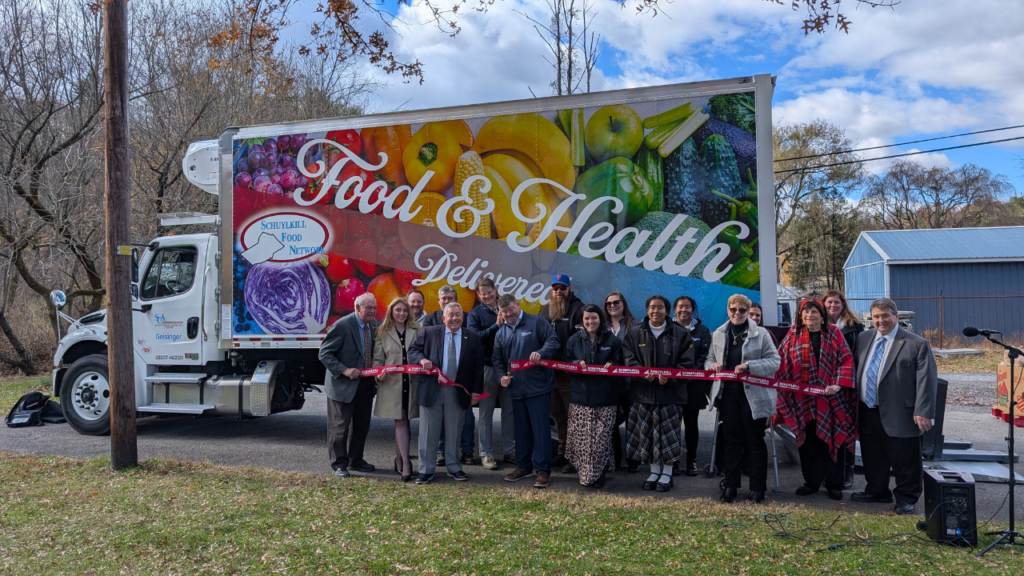 The mobile food pantry is operated in partnership with Geisinger. At last week’s ribbon cutting, Maria Welch, representing the health network, explained how the new truck at Schuylkill Community Action – actually in operation since July – is paying off for those who rely on it.
