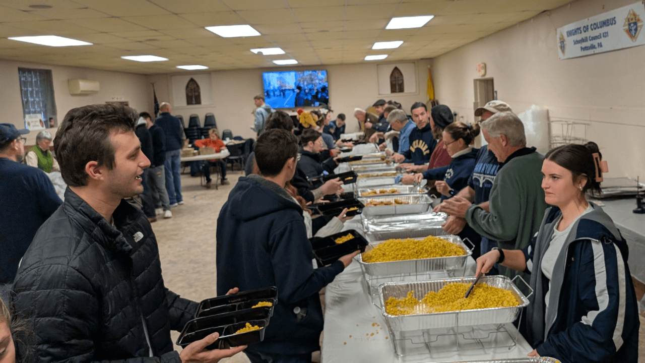 This year, Wagner says, the Knights of Columbus teamed up with Schuylkill Technology Center Culinary Arts students – led by instructor Greg Lieberman – who helped slice hundreds of pounds of turkey ahead of Thursday’s service.