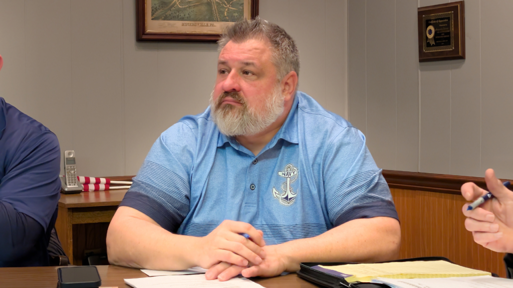 Minersville Mayor Sean Palmer says Harry Brown holds no certifications to be a police officer and is prohibited from possessing a firearm due to the federal indictment. (Coal Region Canary photo | Jan. 13, 2026)