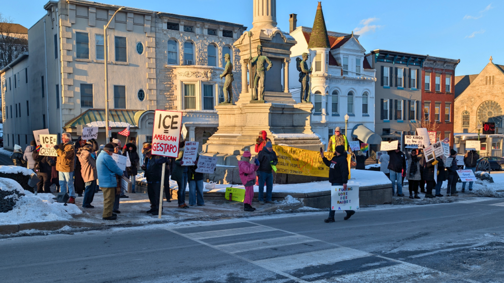 It was icy cold on Tuesday afternoon but it didn’t stop several dozen people from attending a demonstration in Pottsville against (and for) the recent actions of Immigration and Customs Enforcement (ICE).