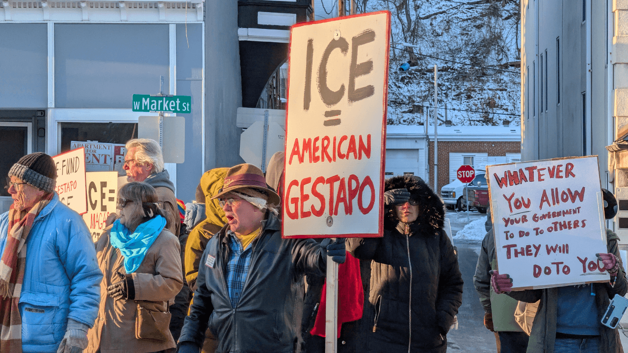 It was icy cold on Tuesday afternoon but it didn’t stop several dozen people from attending a demonstration in Pottsville against (and for) the recent actions of Immigration and Customs Enforcement (ICE).