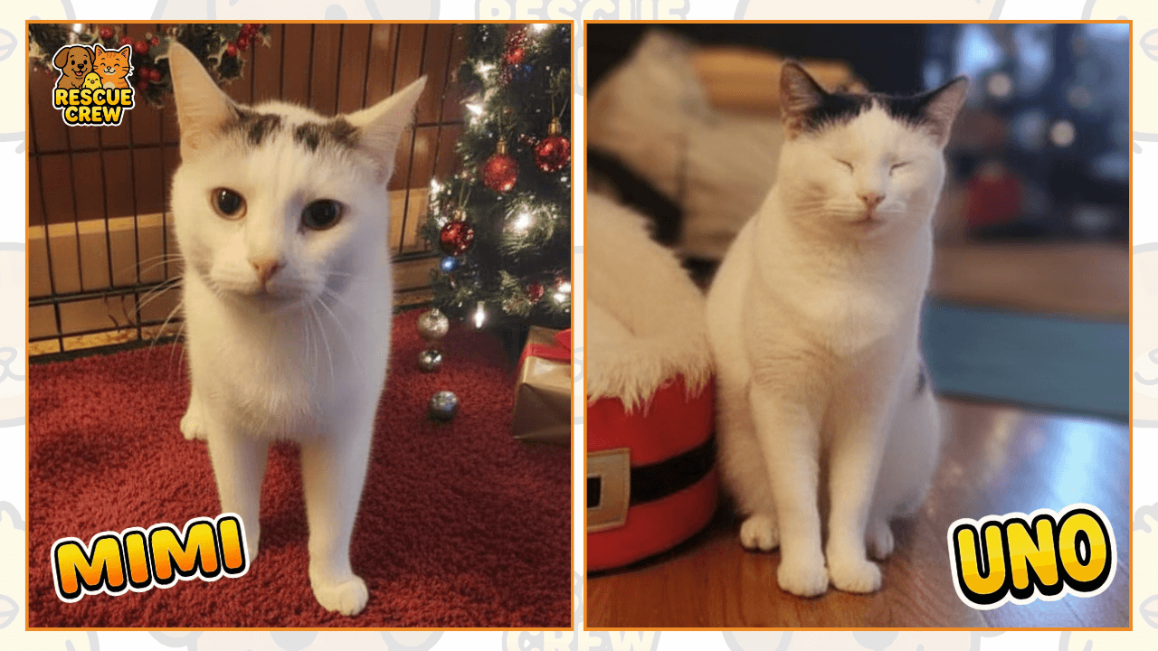 We mentioned about Uno and Mimi being adopted together and if at all possible, we’d love to see tight-knit or bonded pairs find a forever home together. You’ll find it easier to connect and love your adopted friends when they’re feeling safe and comfortable.