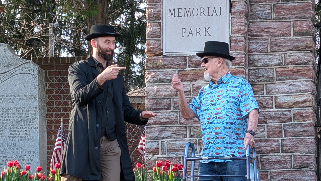 Frack helped recreate the historic coin flip that, as the legend goes, settled a dispute between his relative and Samuel Haupt on what to call the newly incorporated borough. It’d be either Frackville or Mountain City, Haupt’s preference. The Haupt family was represented by Samuel’s great-great-grandson, Rodney Artz, who traveled from Maine to be part of Friday’s festivities.
