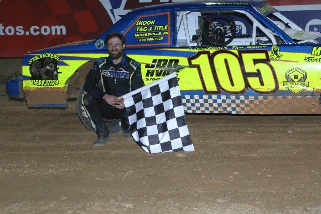 358 MODIFIEDS Feature (25 Laps): 1. Rick Laubach, 2. Logan Watt, 3. Duane Howard, 4. Louden Reimert, 5. Tim Buckwalter, 6. Cody Manmiller, 7. Jax Yohn, 8. Mike Lisowski, 9. Mike Burrows, 10. Brandon Edgar, 11. Wayne Witmer, 12. Kevin Beach Jr., 13. Alan Rudalavage, 14. Tim Fitzpatrick, 15. Cliff Quinn, 16. Hunter Metzger, 17. Heath Metzger, 18. Kevin Olenick, 19. Alex Tonkin, 20. Aleia Geisler, 21. Corey Renninger, 22. Kenny Hildebrandt. Did Not Start: WB James.
