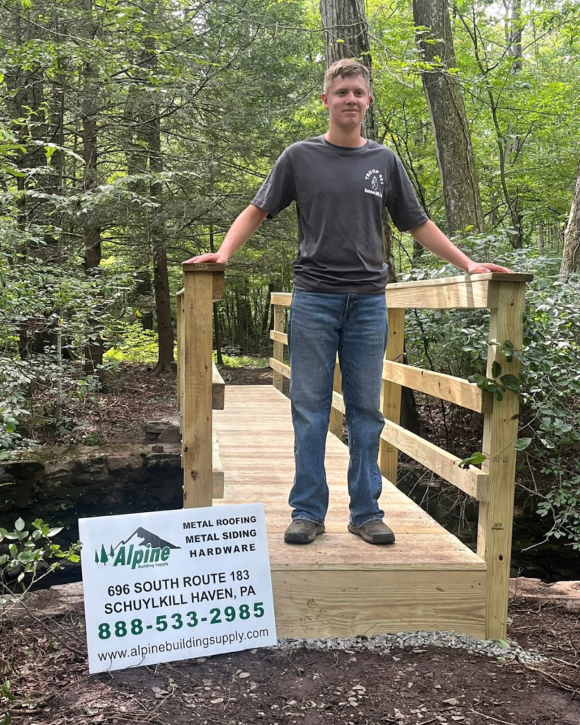 Schuylkill County Commissioners Gary Hess, Barron Hetherington and Larry Padora Jr. spoke about the selection, planning and execution of Mason’s Eagle Scout Project. His project entailed replacing a walking bridge at Frog Hollow with the supplies being donated by Alpine Building Supply and Fisher Welding.