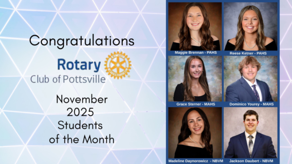 The Pottsville Rotary Club recognized its November Students of the Month at the Club’s weekly meeting on Wednesday, Nov, 5, at Vito’s Coal Fired...